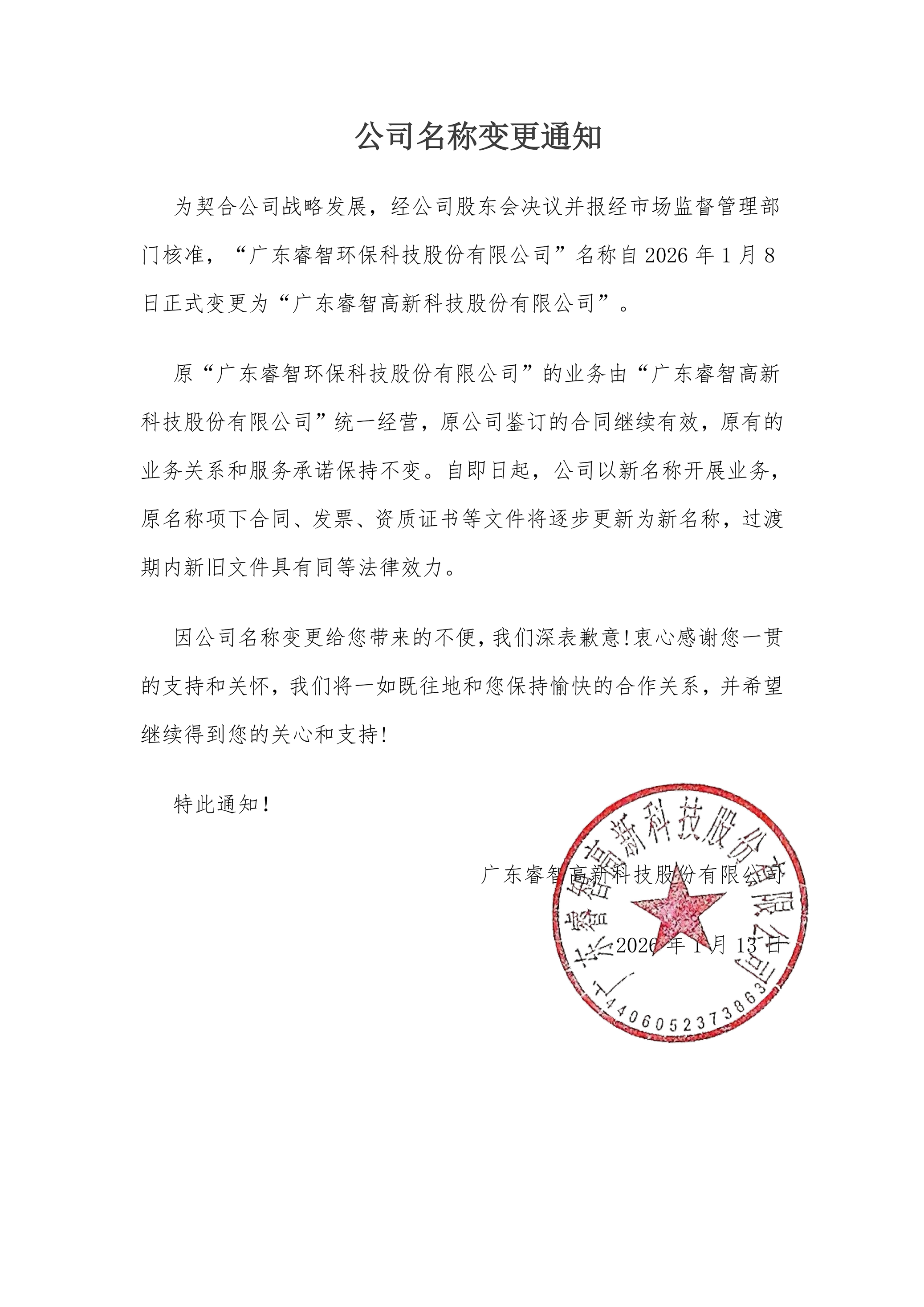 公司名称变更通知